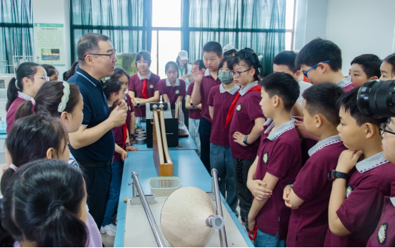 2023年5月27日,马鞍山深业小学501班的20多位同学走进大公司园,参加太阳集团tcy8722科普教育基地组织的科普校园行活动。物理实验中心的孙文斌老师带领同学们走进物理演示厅,让同学们亲身体验科学的奥秘和乐趣。