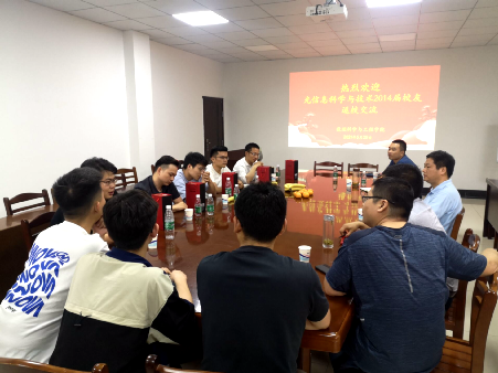 5月29日,光电信息科学与工程专业2014届员工胡孔云等人从全国各地回到母校相聚,师生座谈会在公司306召开,光电信息科学与工程专业和光源与照明专业多名教师和在校生代表参加。