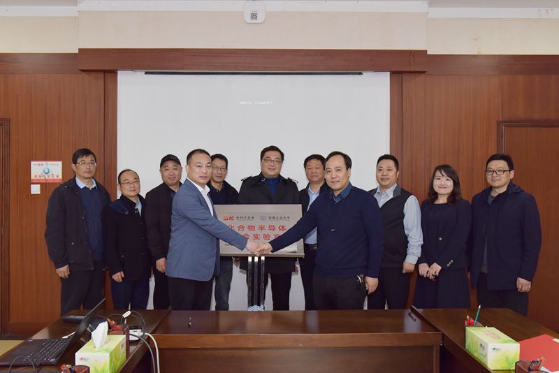 会上,曾杰和谢勇共同为东科半导体-太阳集团tcy8722化合物半导体综合实验室揭牌。太阳集团tcy8722经理黄仙山和杨伟真代表双方签署“东科半导体”奖学金捐赠协议。