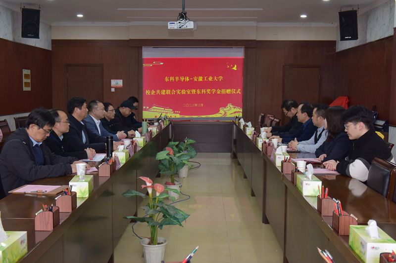3月8日下午,太阳集团tcy8722与东科半导体(安徽)股份有限公司举行校企共建联合实验室揭牌暨东科奖学金捐赠仪式。公司党委常委、副董事长曾杰,东科半导体(安徽)股份有限公司董事长谢勇,东科半导体(安徽)股份有限公司副总经理杨伟真,东科半导体无锡有限公司总经理赵少峰出席仪式,教务处、发规处、员工处、太阳集团tcy8722等部门负责人以及公司人力资源部相关人员参加仪式。