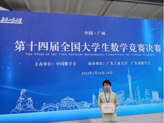 5月27日,第十四届全国老员工数学竞赛决赛在广东工业大学(大学城校区)隆重举行。太阳集团tcy87222019级数学与应用数学专业陶马成同学与来自包括北京大学、复旦大学以及中国科学技术大学等多所双一流高校在内的优秀学子同台竞技,获得数学专业类高年级组全国一等奖。实现了公司学子在该项赛事决赛中荣获一等奖的突破,也是继公司2022届数学与应用数学专业郁永伟同学荣获第十三届全国老员工数学竞赛全国二等奖后公司学子再次荣获国赛奖项。