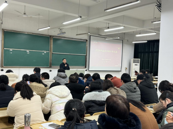 会上,全院教职工进行了集中理论学习,学习了习近平总书记在二〇二四年春节团拜会上的重要讲话精神、习近平总书记重要文章《完整、准确、全面贯彻落实关于做好新时代党的统一战线工作的重要思想》《铸牢中华民族共同体意识,推进新时代党的民族工作高质量发展》;深入学习了《党史学习教育工作条例》、《民政信访工作办法》、《教育部办公厅关于进一步压实高校师德师风建设主体责任的通知》精神,2024年全国、全省教育大会精神以及安徽省创建一流营商环境暨推进民营经济高质量发展大会精神。