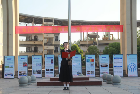 校团委书记赵颖虹在国旗下为同学们讲授《国家安全,青年担当》主题思政课。她以“历史之鉴”“时代之问”“青年之责”三个关键词为主线,带领同学们分析了新形势下的国家安全挑战,解读了“总体国家安全观”的科学内涵。希望同学们筑牢思想防线、练就过硬本领、传递正向能量,以清朗之声守护国家安全,用青春谱写守护家园的壮丽篇章。