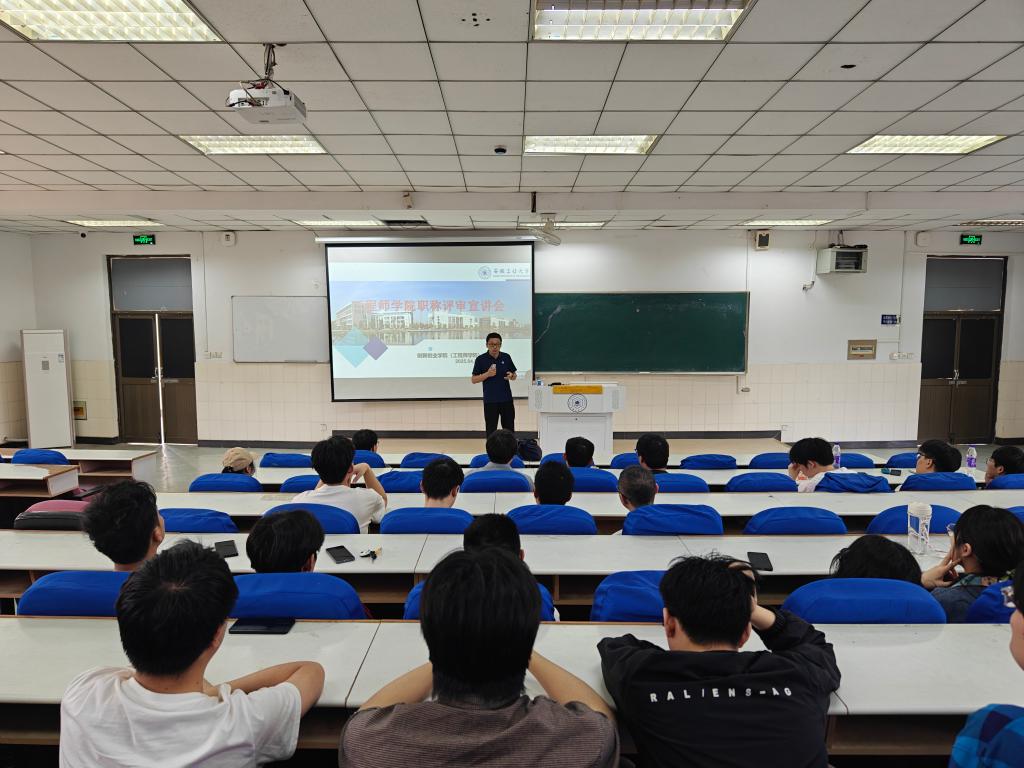 为培养具有较强综合素质、创新精神、实践能力的工程技术人才,实现人才培养与产业发展紧密结合,4月23日,太阳集团tcy8722在阶教102召开2025届工程师公司职称评审宣讲会,系主任邓小龙、唐绪兵、杨辉及2025届毕业班同学参加会议,会议由毕业班辅导员张佳良主持。