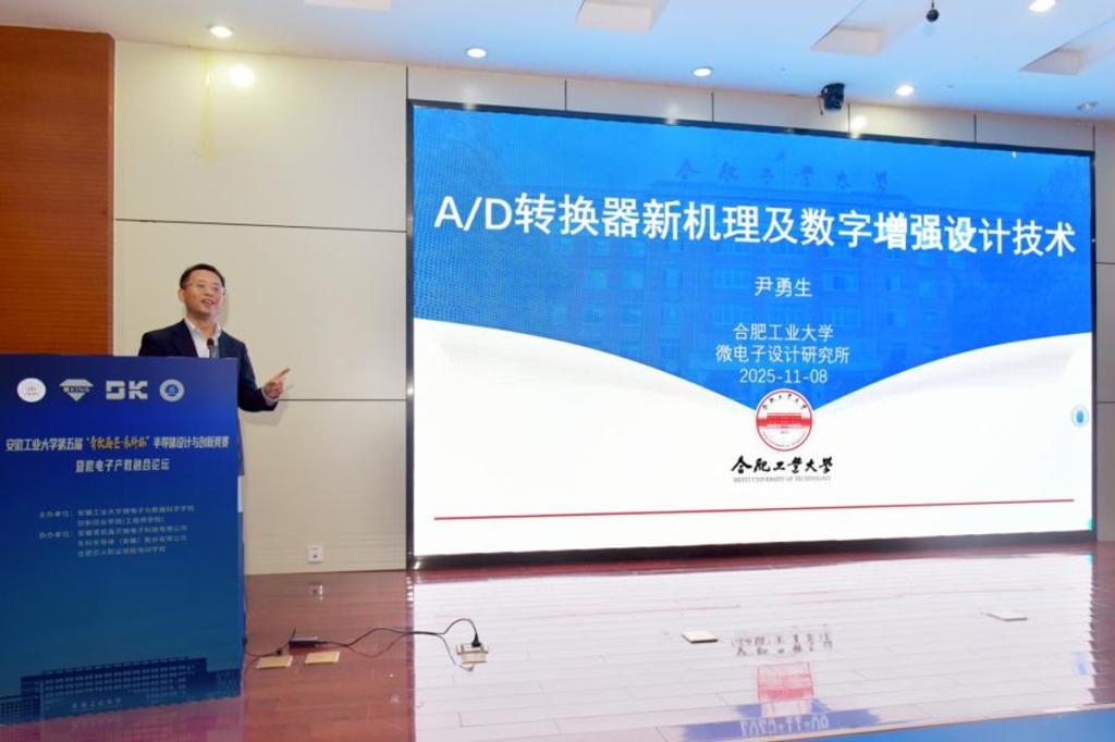 论坛报告环节,尹勇生教授、彭春雨副教授、高小芳博士、黄博同博士、黎绍鑫工程师分别作了题为《A/D转换器新机理及数字增强技术研究》《静态随机存储器及其存算一体化芯片设计》《芯粒互连技术介绍》《2025年中国集成电路产业链人才就业需求现状分析》《集成电路前世今生》的报告。