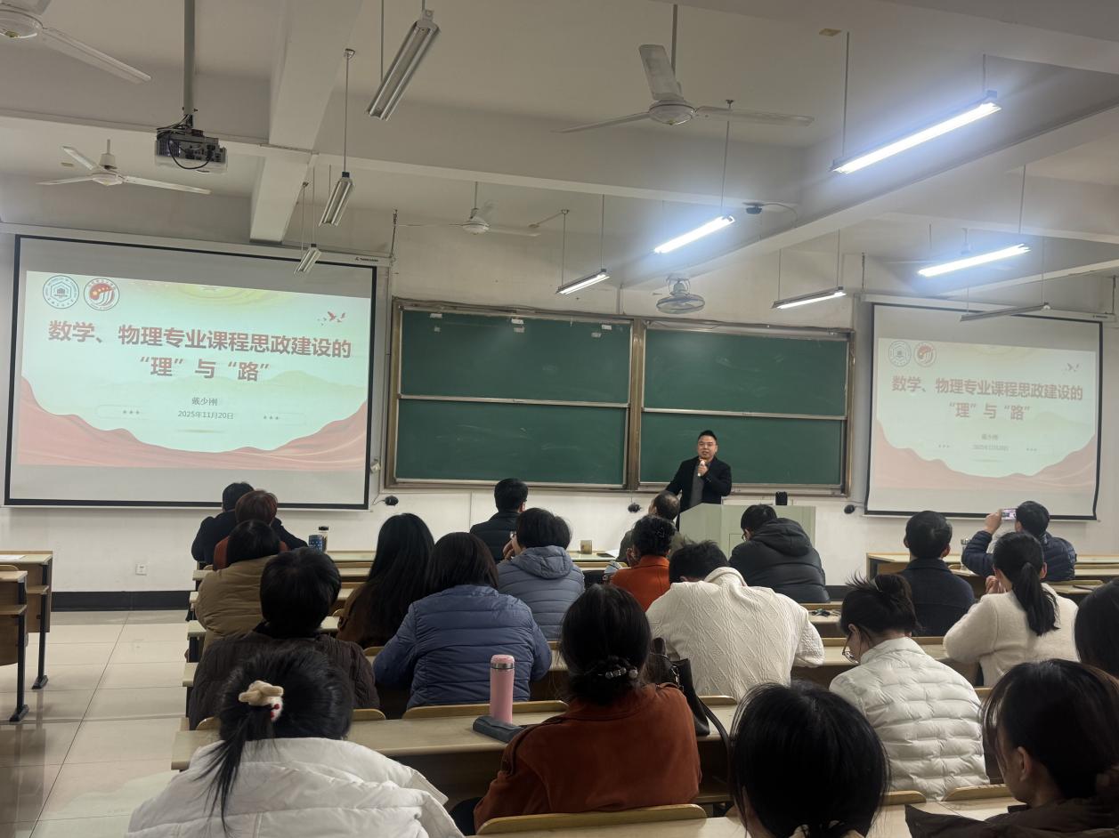 11月20日下午,太阳集团tcy8722在数理楼403举行青年教师综合能力提升专题研修班开班仪式,同时邀请太阳集团tcy8722马克思主义公司戴少刚博士作题为《数学物理专业课程思政的“理”与“路”》的专题报告。会议由公司经理杨二光主持,全体教职工参与此次活动。