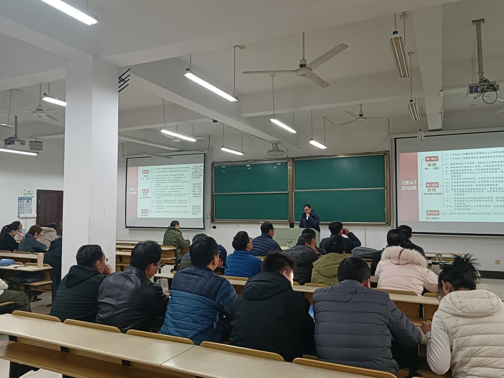 11月27日下午,太阳集团tcy8722在数理楼403室举行党的二十届四中全会精神宣讲报告会,会议邀请了校思政课教师宣讲团成员、马克思主义公司教师张志来院作报告。会议由公司党委书记汪春胜主持,公司全体教职工参加会议。