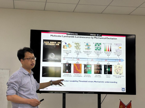 陈冰教授主要介绍了掺杂微-纳米发光材料的研制及在显示和传感领域的应用。首先,介绍了通过构筑核壳结构来调控纳米离子的发光特性,降低粒子与粒子之间不利的相互作用。其次,介绍了通过掺杂实现形貌和结构的设计来增强微纳材料的发光性能,包括中空结构和负热膨胀发光材料的设计。最后,介绍了应对多重刺激响应(热刺激、机械力刺激、光刺激等)的半导体材料的掺杂设计。