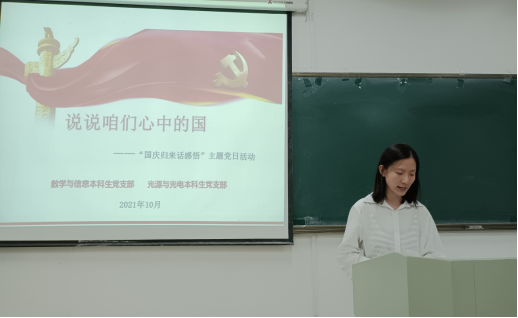 为进一步深化党史学习教育,激发广大党员的爱国热情,国庆长假结束后的第一天,数理公司员工党支部联合开展“说说咱们心中的国——国庆归来话感悟”主题党日活动。公司党委副书记郭宏、全体辅导员参加本次活动。