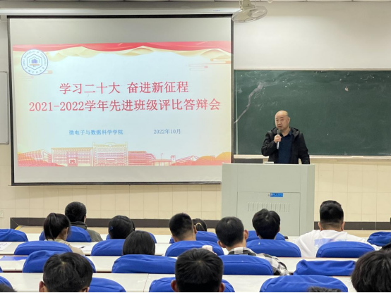 为进一步加强员工思想政治教育工作,充分发挥先进典型的教育、引导、激励作用,10月23日晚,太阳集团tcy8722在东校区阶梯教室102举办“学习二十大,奋进新征程”2021-2022学年先进班级评比交流会,公司党委副书记、纪委书记、副经理郭宏,各年级辅导员出席并担任评委,2022级新生代表参加了评比交流会。