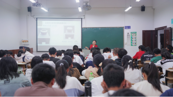蒋烨以《回到生活美学的起点-透过印纹硬陶器的纹样感受美学的文明曙光》为题,讲授了硬陶器的纹样在中国的源起和发展历程,带领同学们赏析了各类印纹硬陶器的纹样艺术传承与创新的典范之作,感受陶器的艺术之美。在讲座中,趣味性的互动游戏让同学们能亲自模拟陶器的制作过程,更加切实感受中华优秀传统文化的魅力。