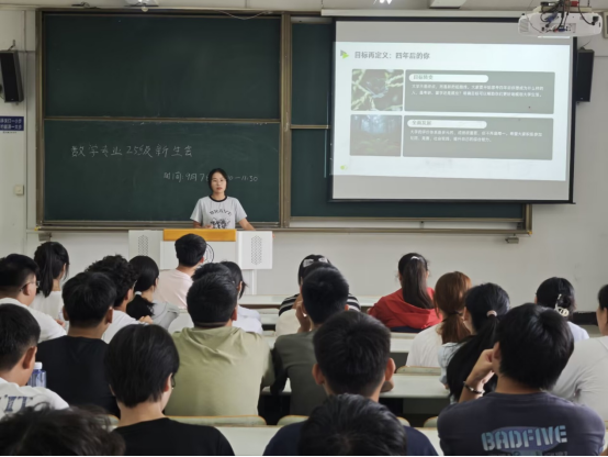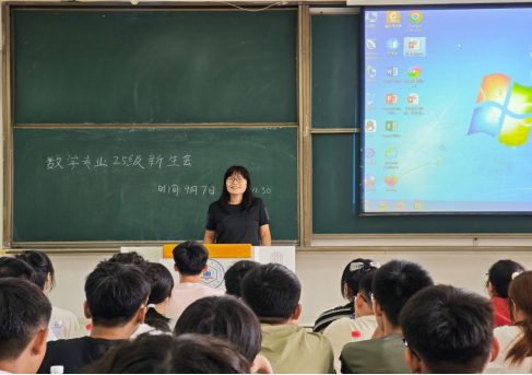 金秋送爽,丹桂飘香。9月7日上午,太阳集团tcy8722数学与应用数学专业2025级新生见面会在东教304教室举行。系党支部书记谷勤勤老师,新生班主任王石老师和张敏敏老师,班级助理王武和胡磊,以及全体新生共同参与。