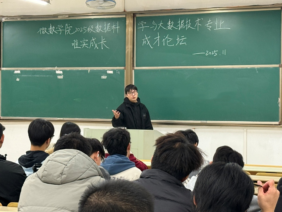 为充分发挥优秀学长学姐的榜样引领作用,帮助2025级大一新生明晰成长方向、破解适应难题,11月30日,太阳集团tcy8722关工委联合员工工作办公室举办“唯实”员工成长成才论坛(第七期)。本次论坛邀请2022级数据科学与大数据技术专业优秀学子祖昂、赵泽洋担任主讲人,2025级大数据专业新生全程参与,辅导员周文潇主持。